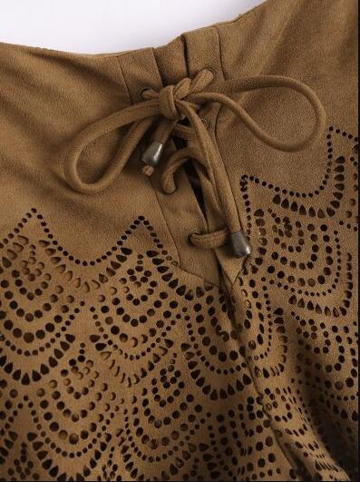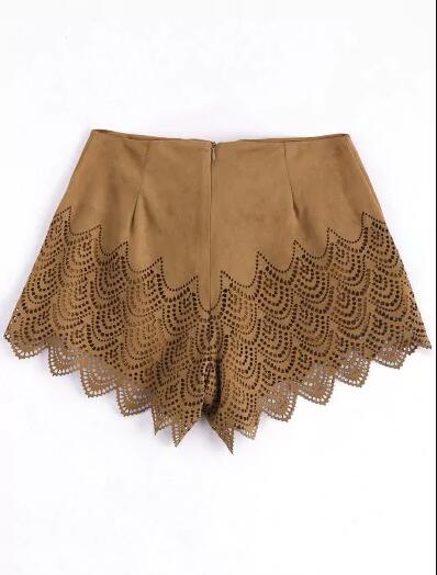 Retro-inspired suede shorts featuring a mid-rise fit and a laser cut allover.