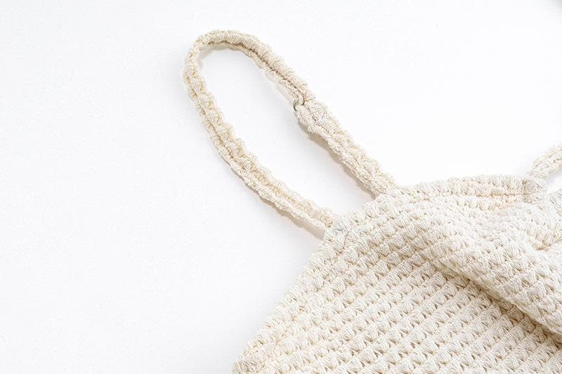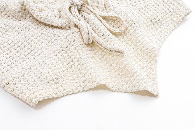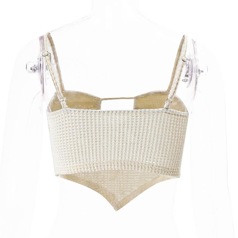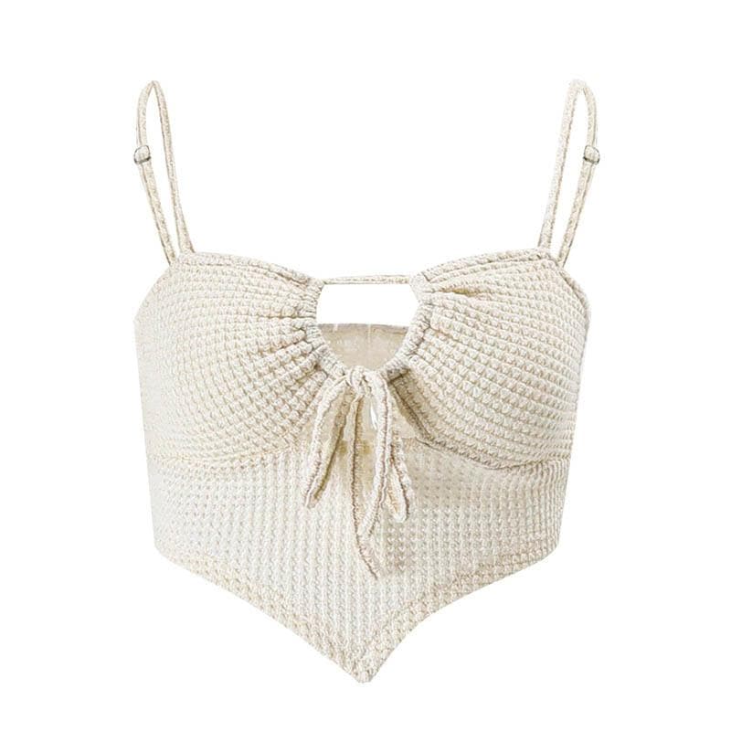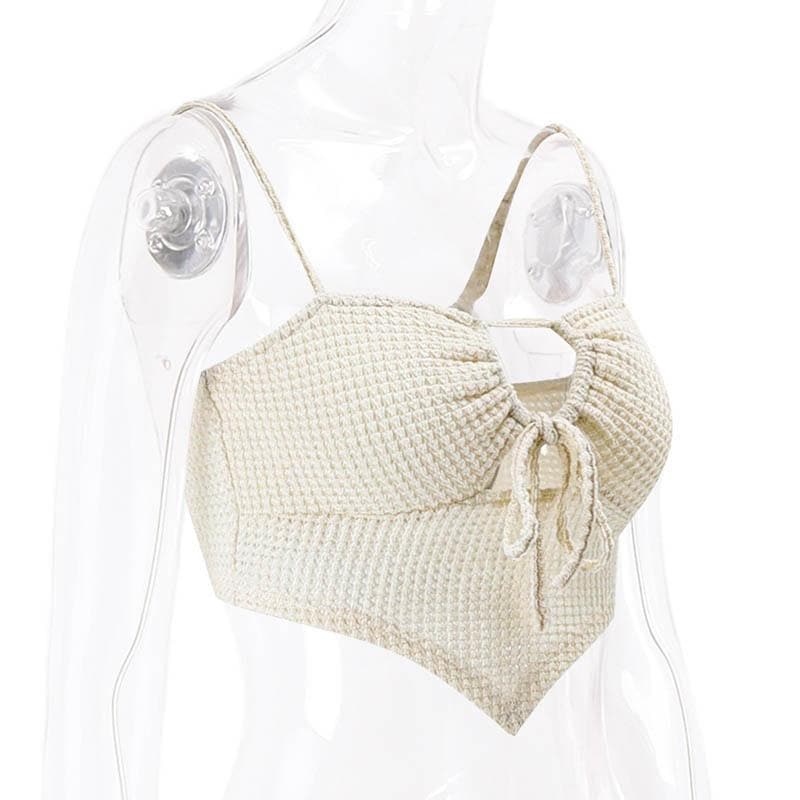 Textured drawstring square neck solid hollow out cami top
