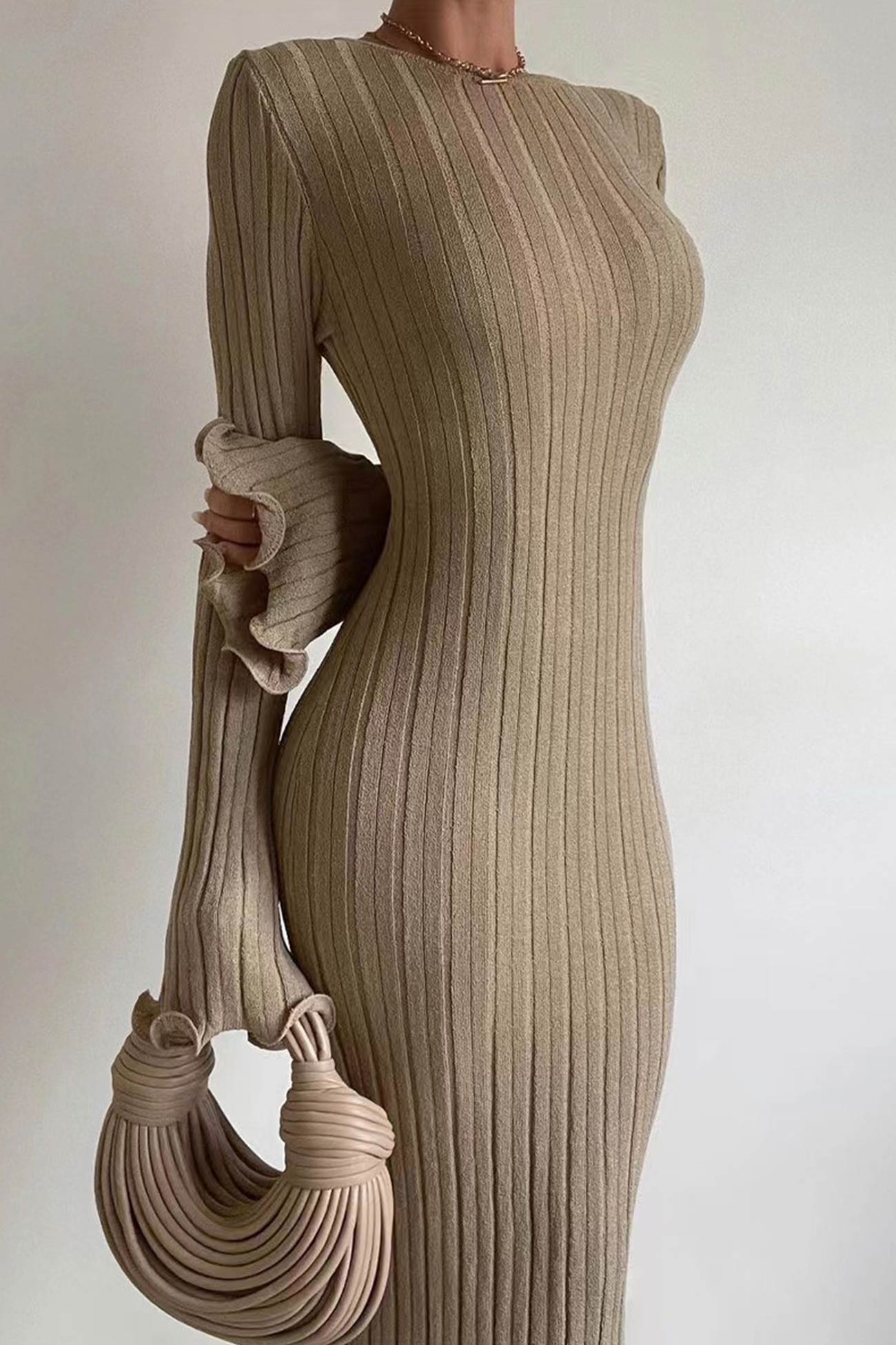 Long Flares Sleeve Backless Ribbed Knit Dress