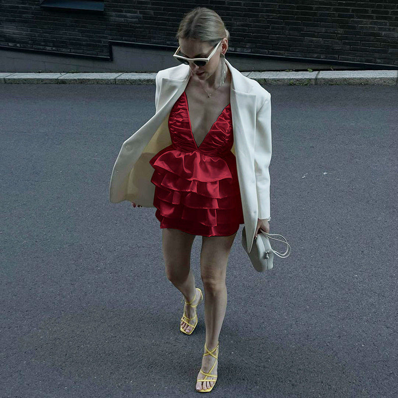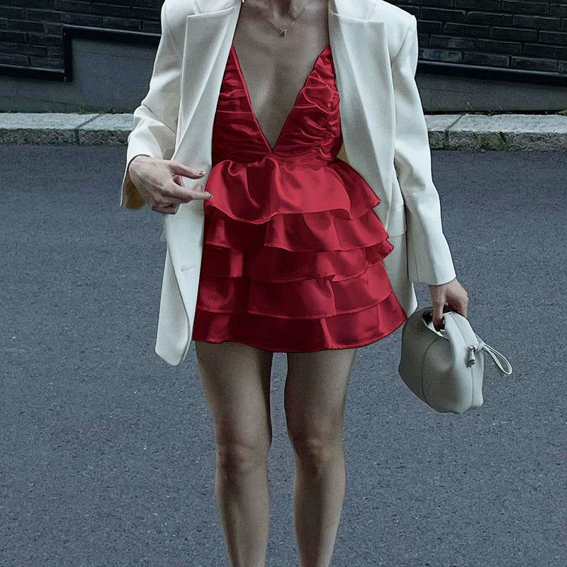 Step out in style with this Lydia Diamond Chain Spaghetti Strap Mini Dress. Crafted from a comfortable polyester blend, it features a deep V-neck, sleeveless design, and diamond chain spaghetti straps for a sophisticated yet sexy look. Perfect for evening wear and special occasions.