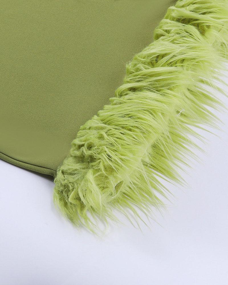 Details: Mini dress with shoulder straps details and fluff design