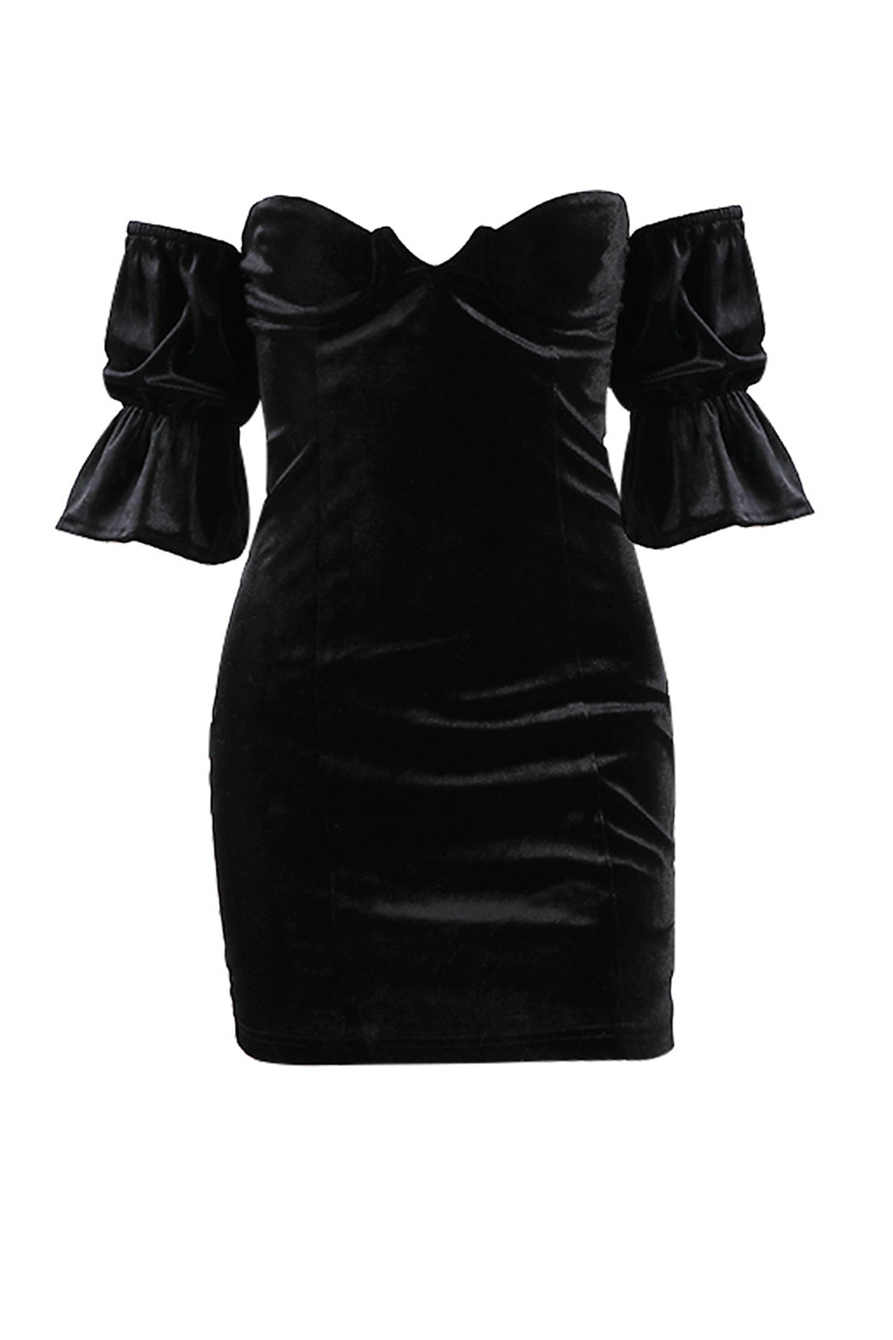 Off Shoulder Flares Sleeve Corset Velvet Dress