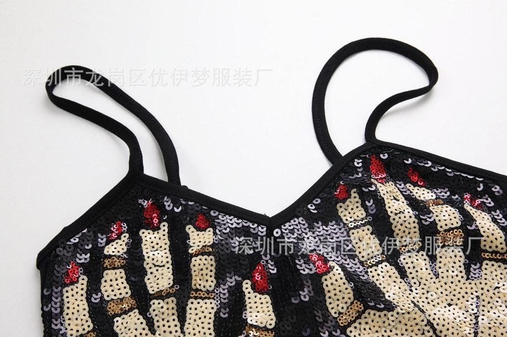 Palm pattern glitter backless contrast cami top