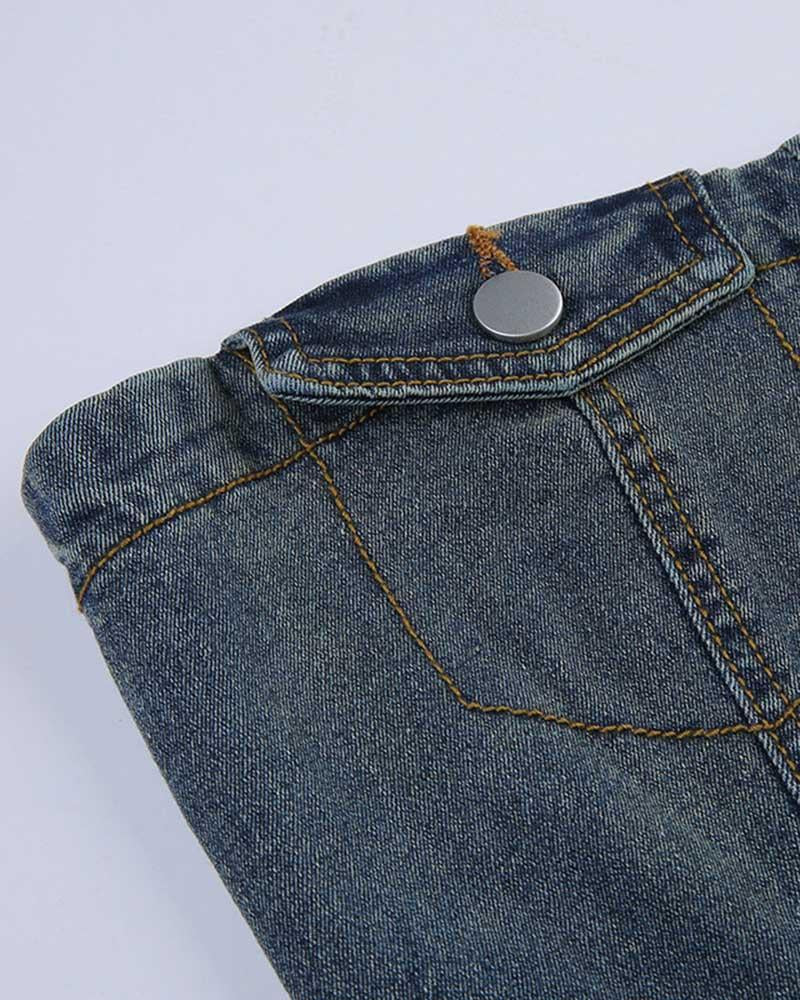Details: Denim tube mini dress with belt design