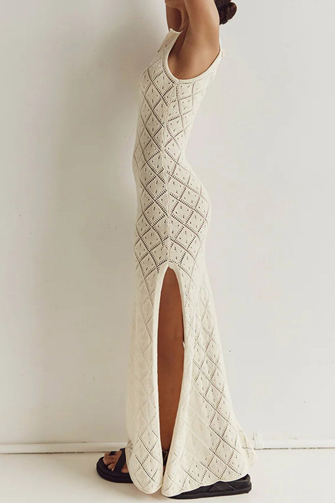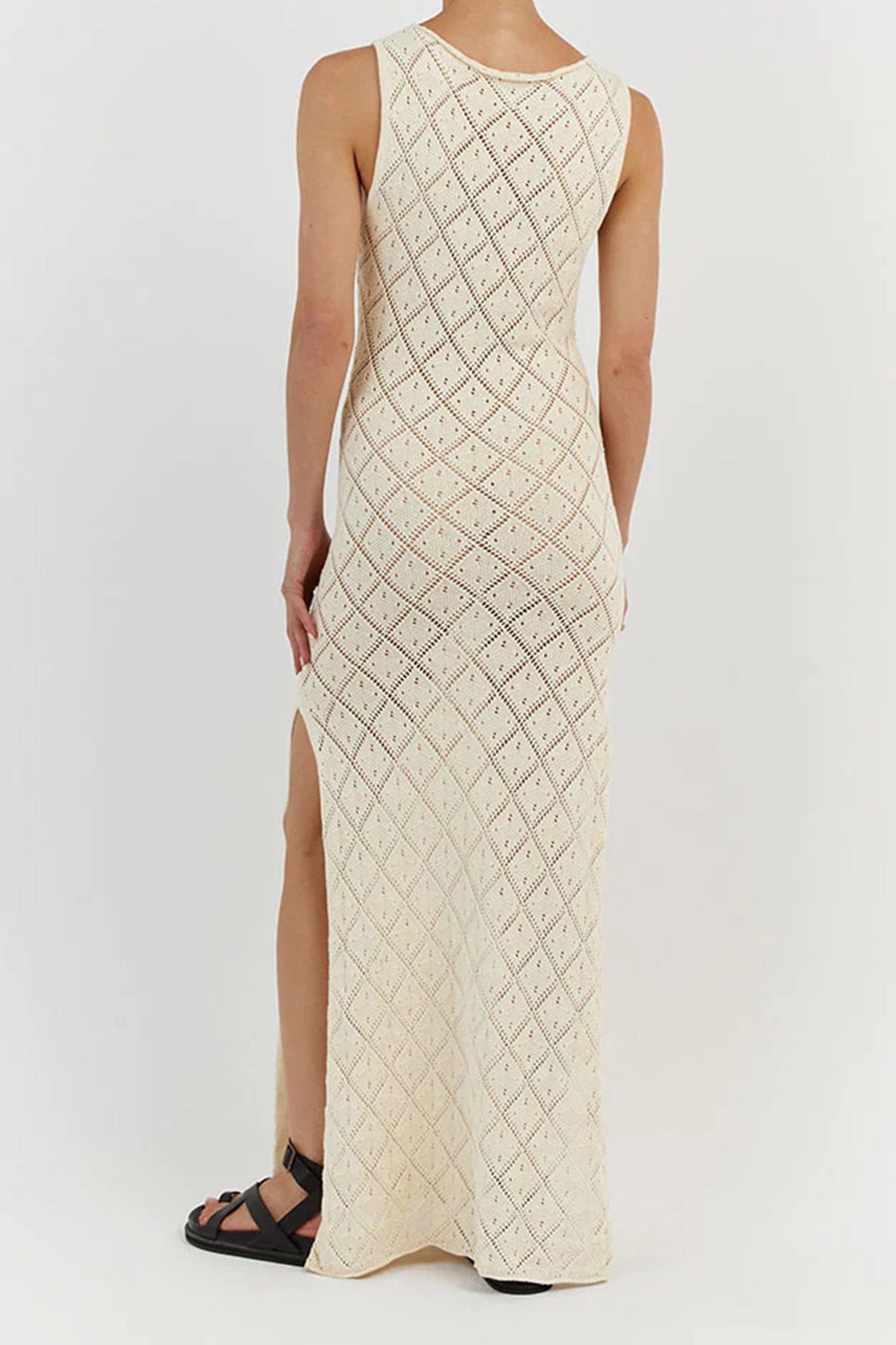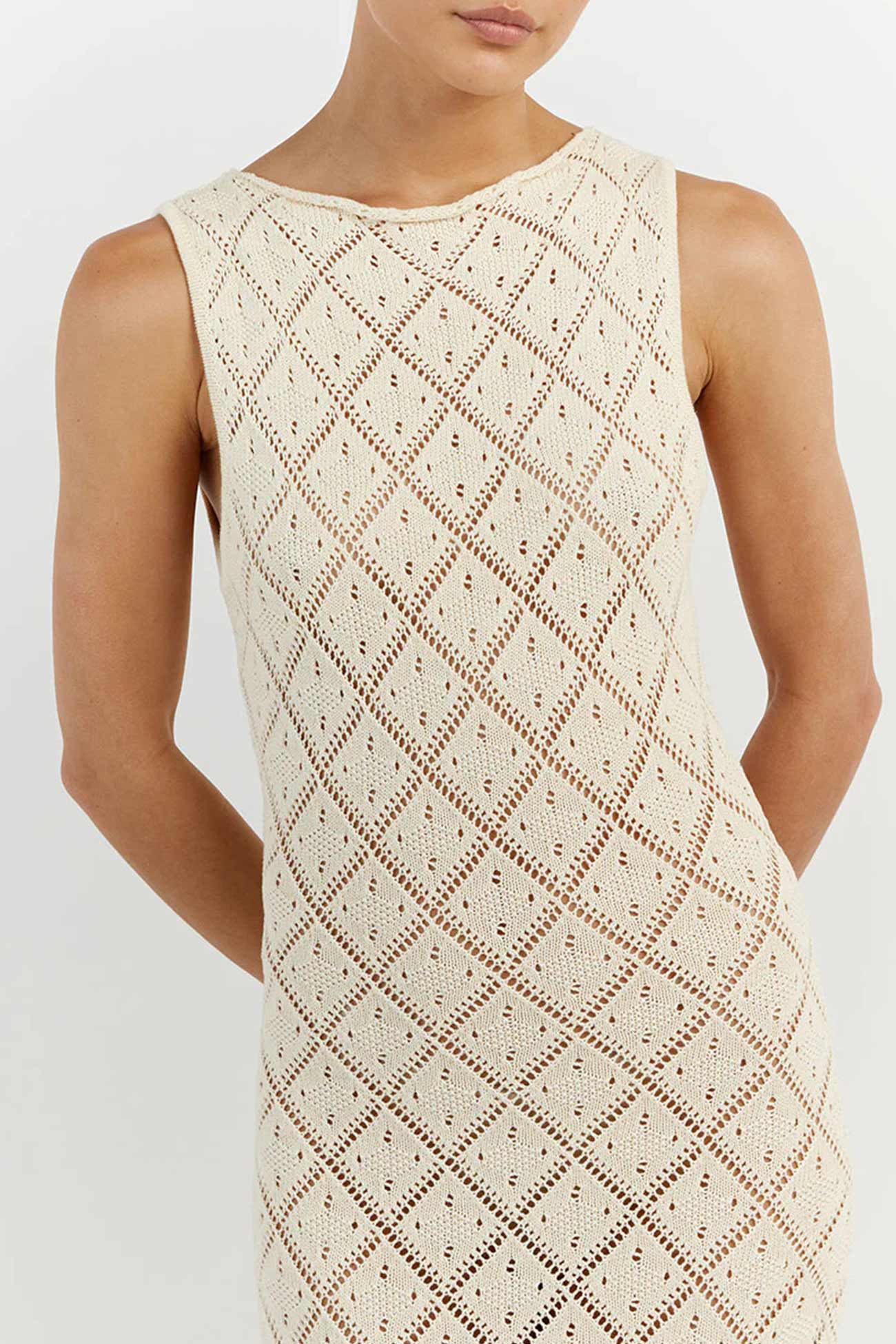 Rhombus Crochet Hollow Out Knit Tank Dress