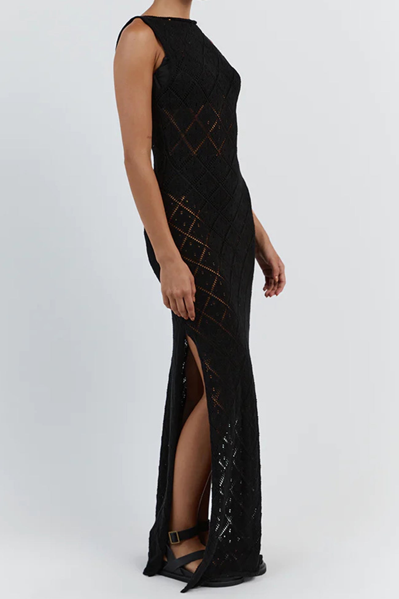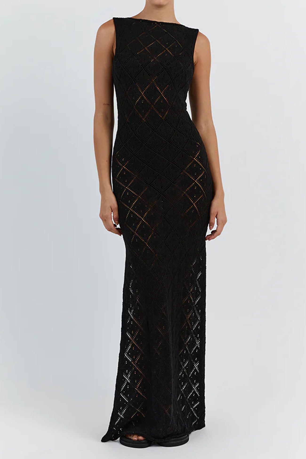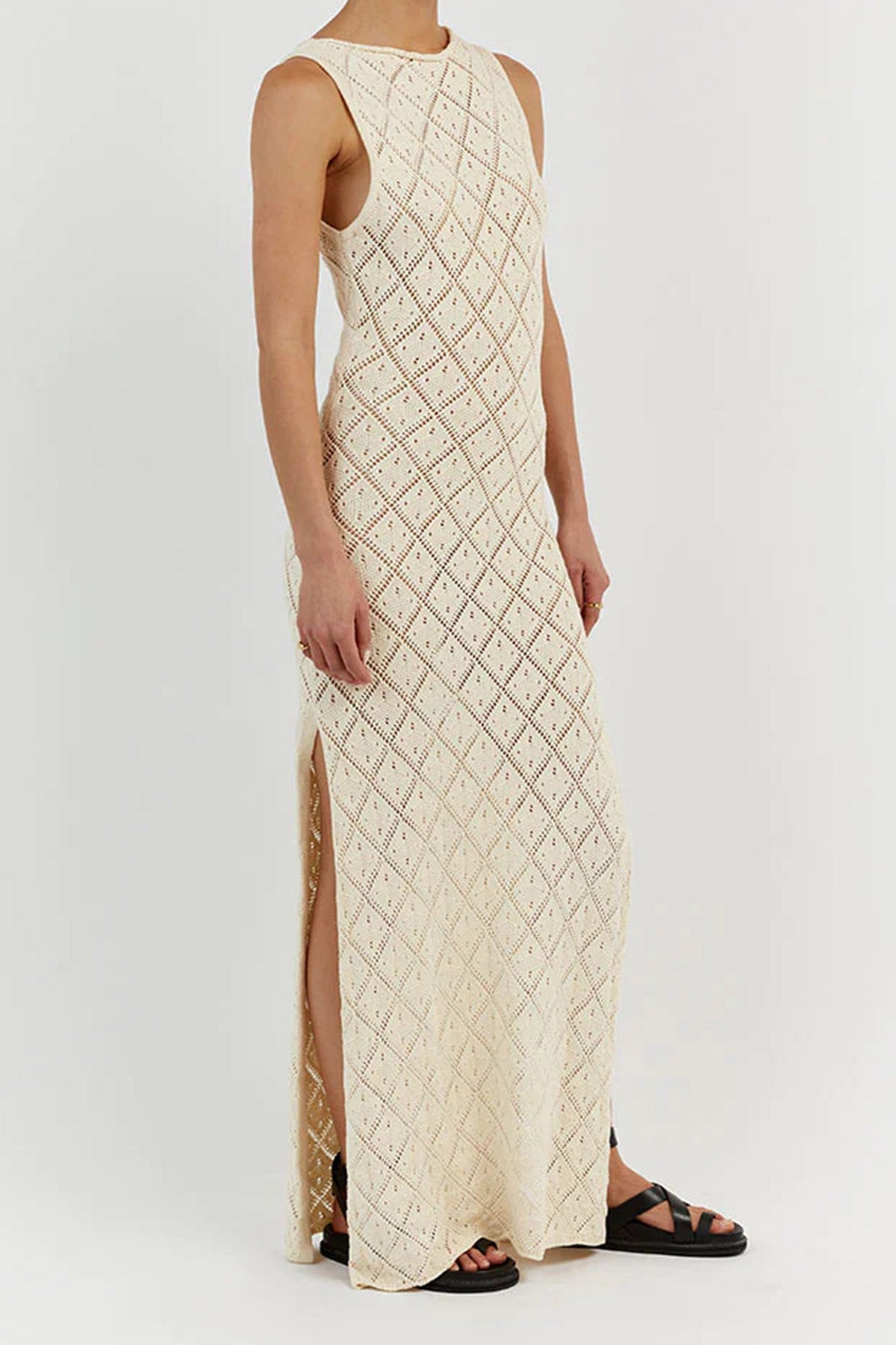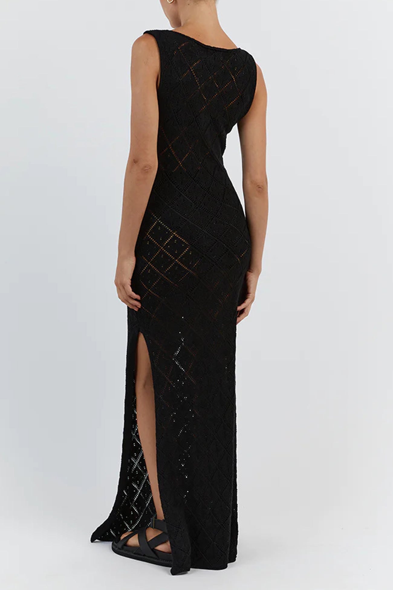 Rhombus Crochet Hollow Out Knit Tank Dress