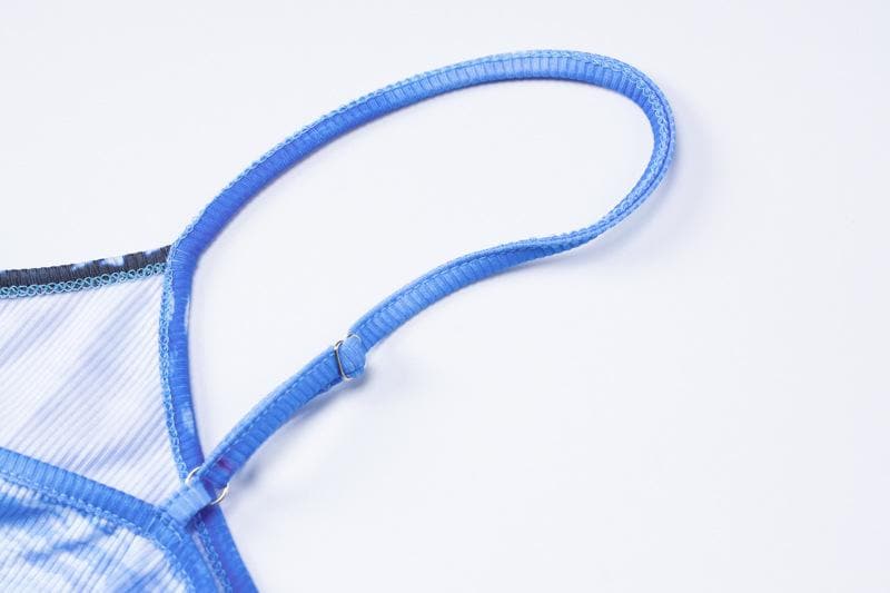Ribbed contrast print backless u neck cami maxi dress