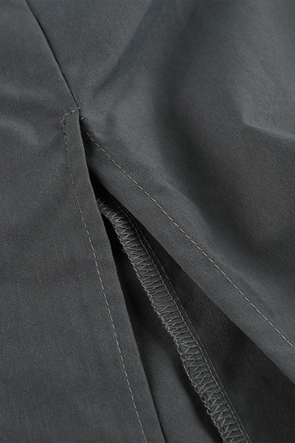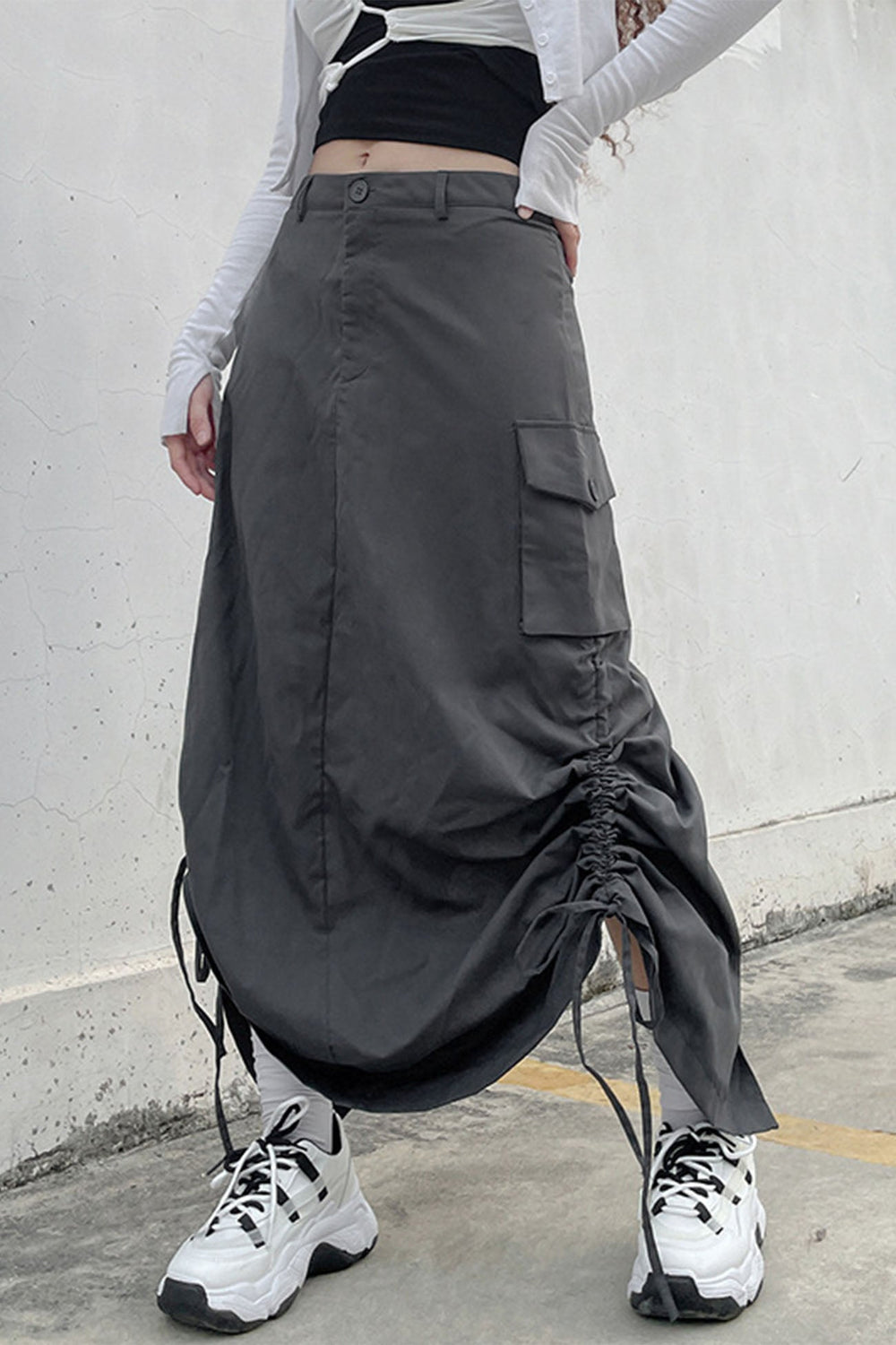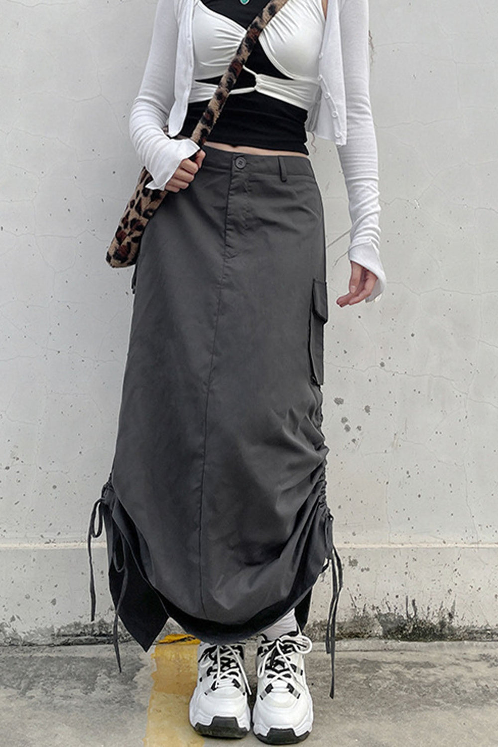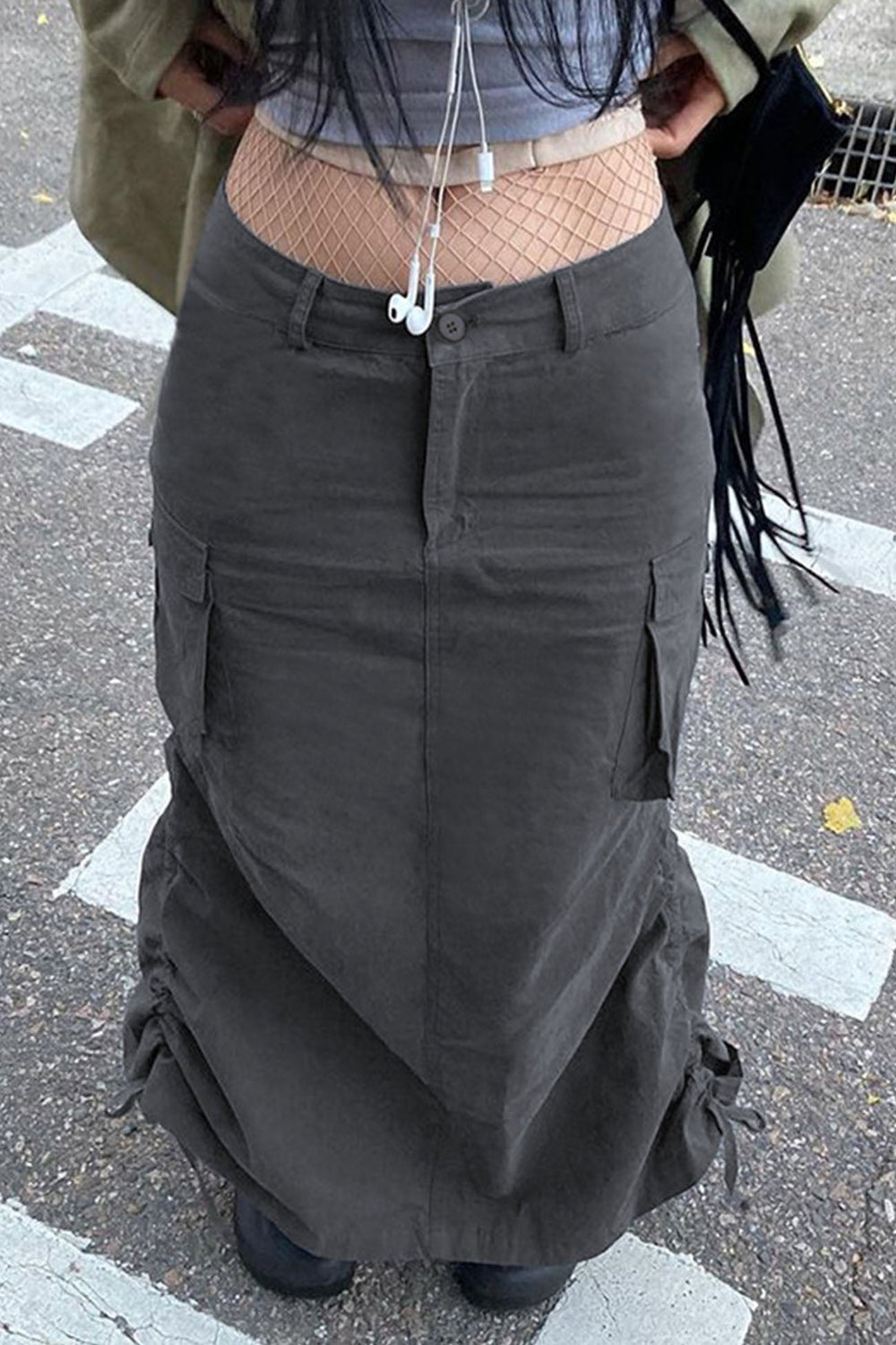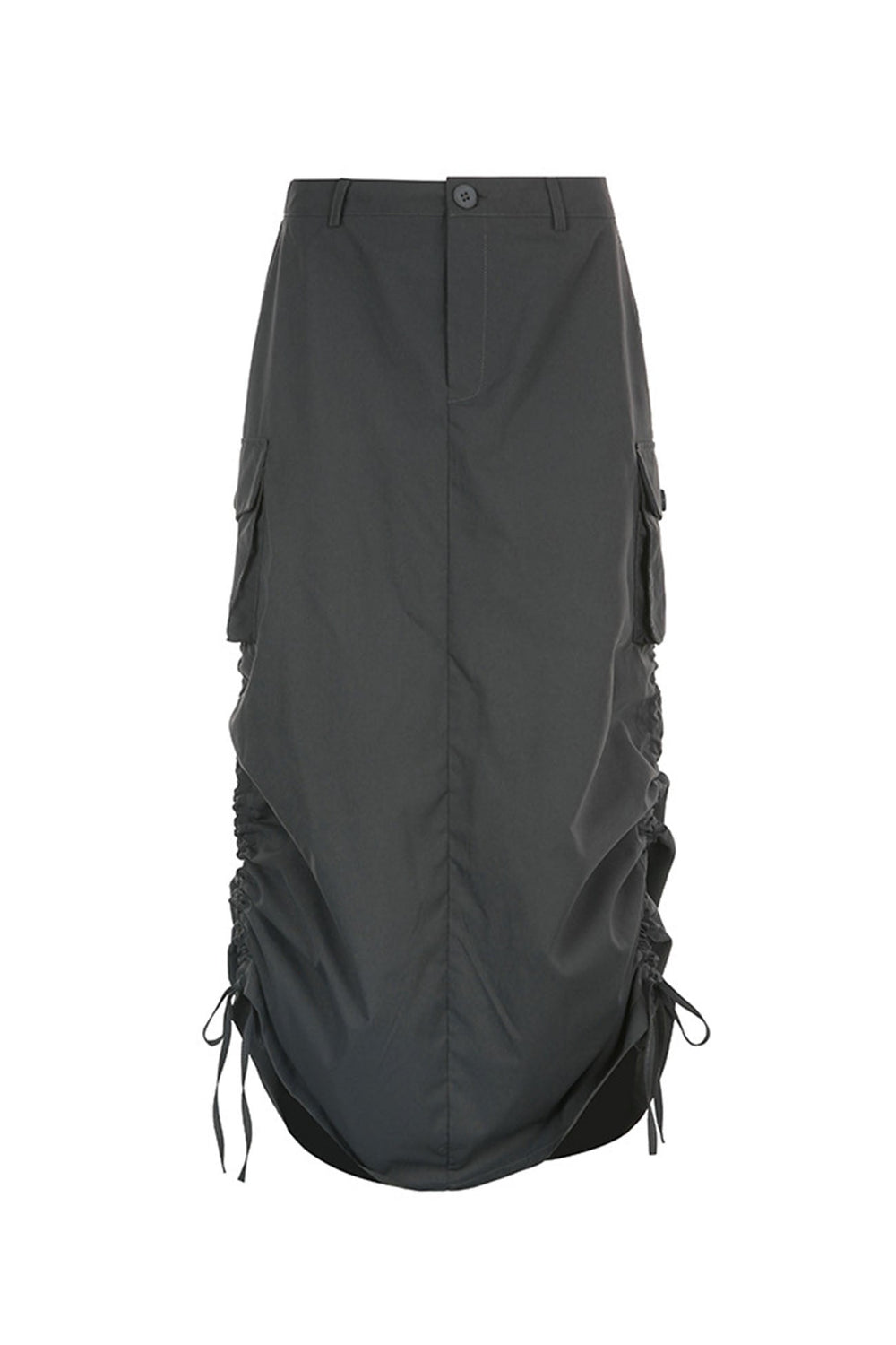 Solid Color Back Slit Ruched Pocket Midi Skirt
