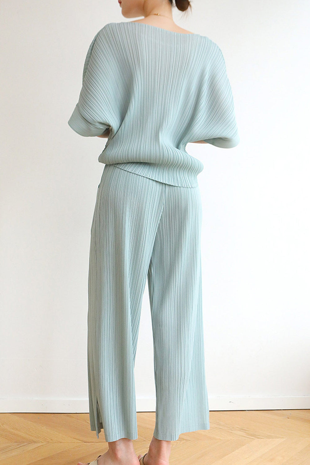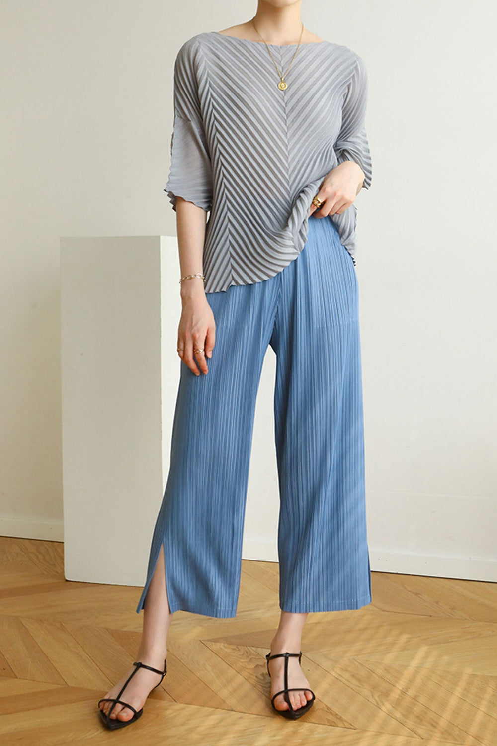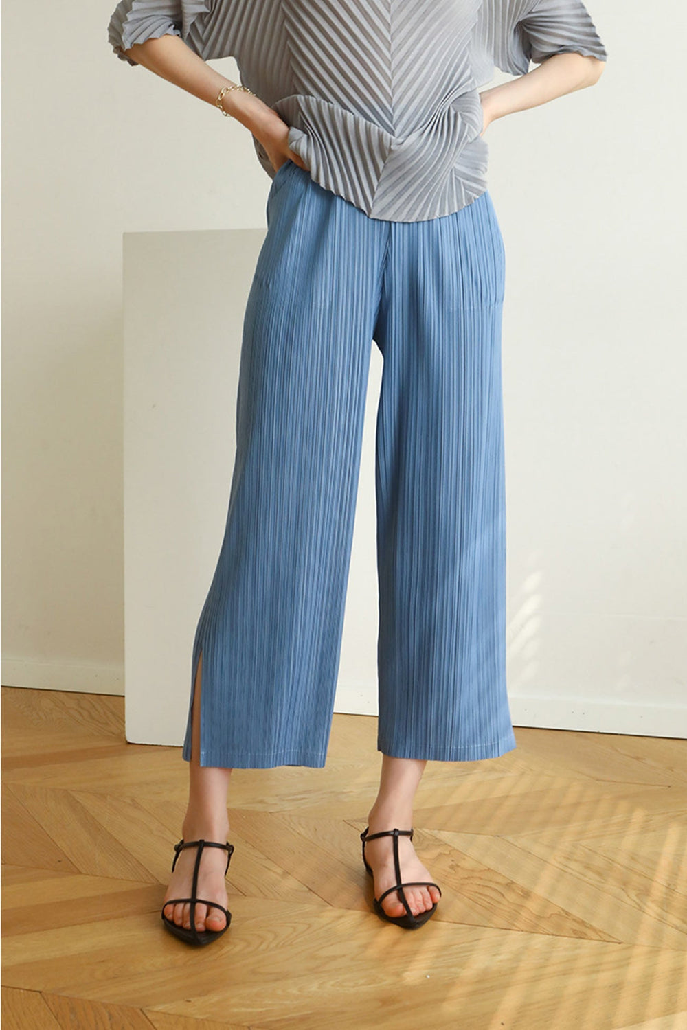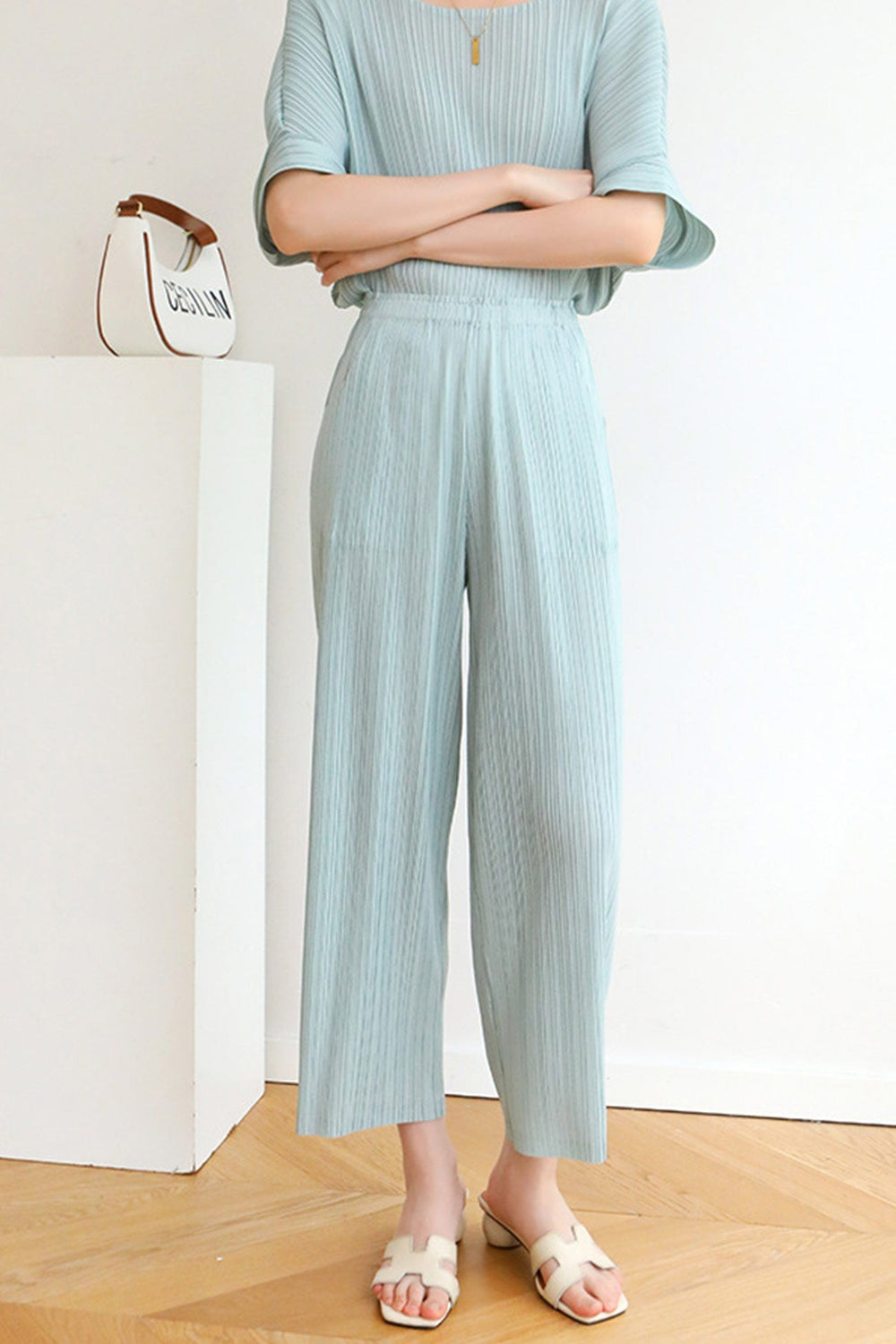 This pant is casual and chic.?It's light and dropped?smooth due to its pleated style. You'd feel comfortable due to the two pockets and elastic waistband. Easy to walk and sit.? Perfect to go with simple tops.