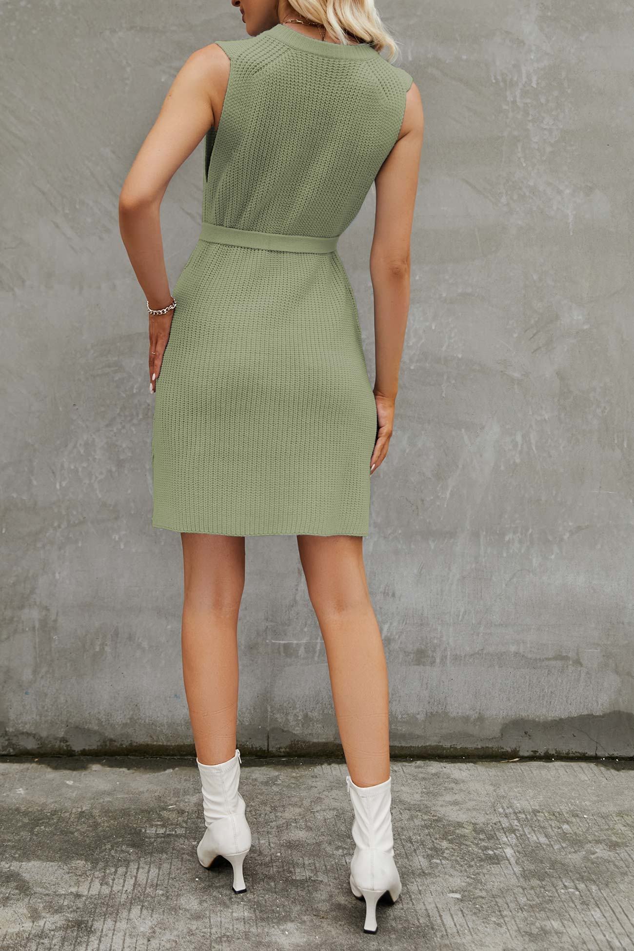 Solid Color Tie-up Side Slit Knit Tank Dress