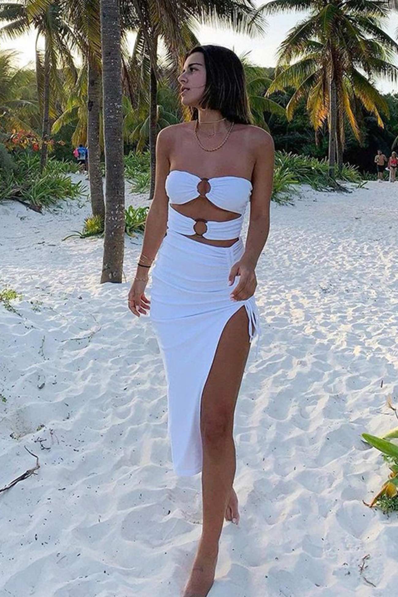 Strapless Cutout Drawstring Side Slit Dress