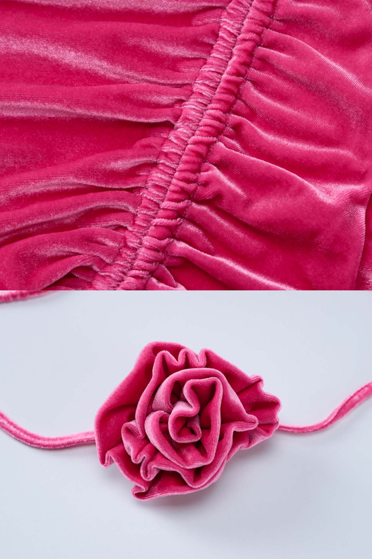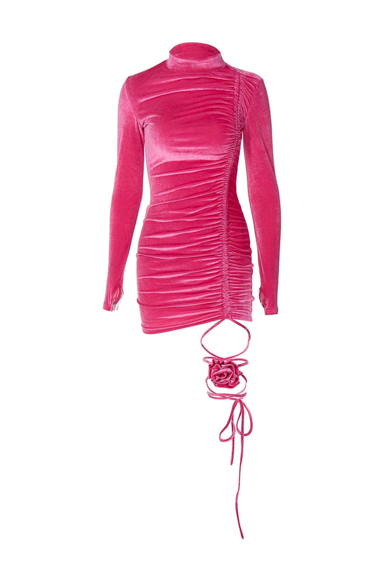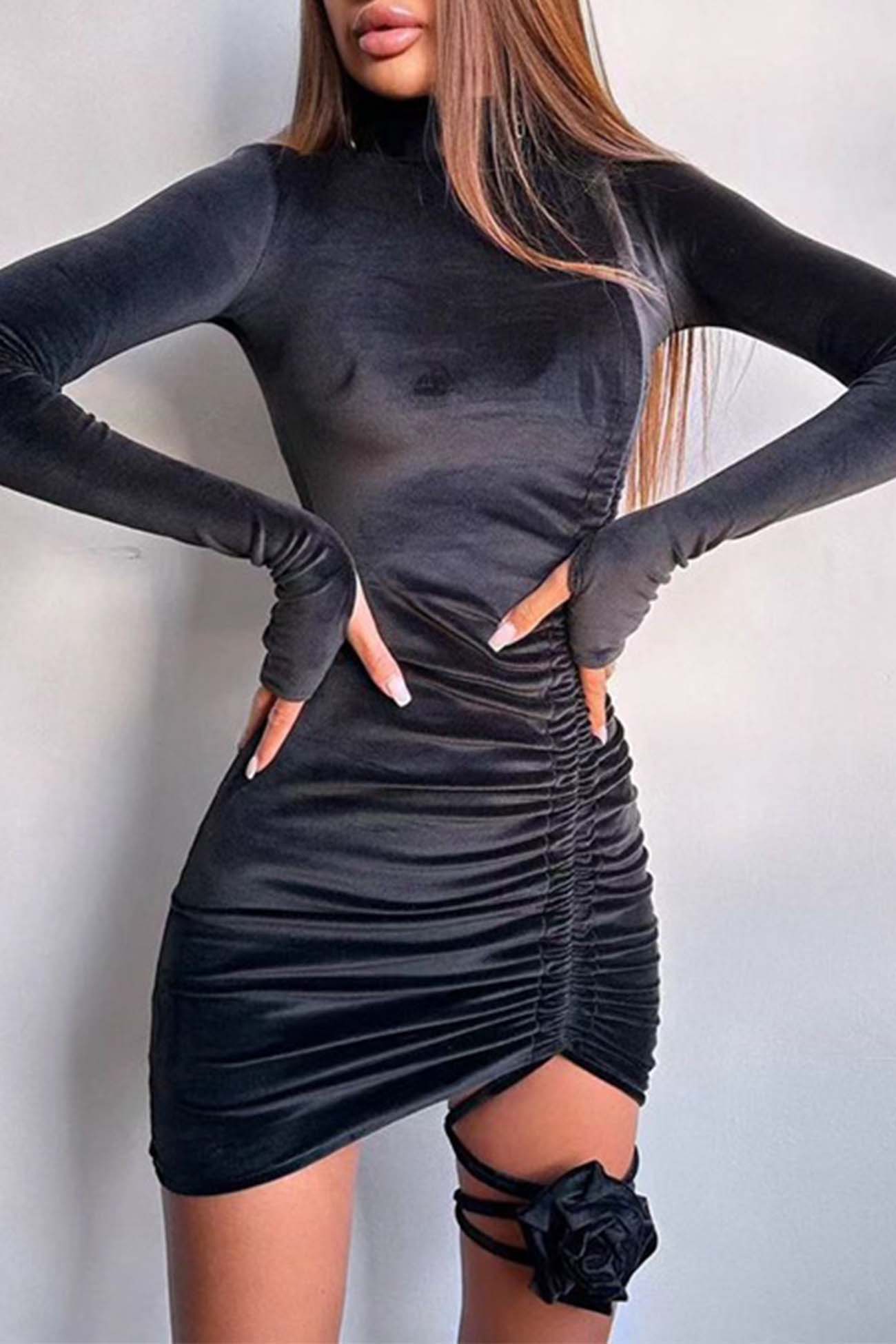 Suede Mock Neck Drawstring Flowers Mini Dress