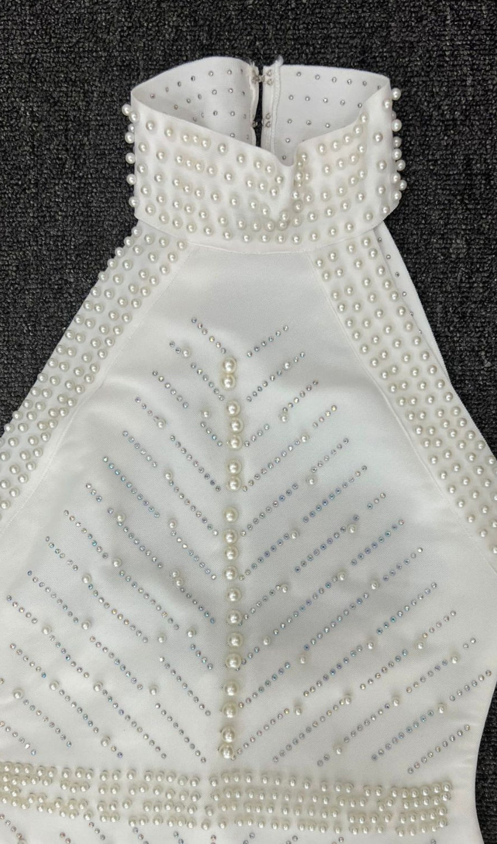 THALIY PEARL FRINGED MIDI DRESS - WHITE